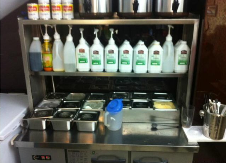 店子里设备有。全自动封口机一台(益芳999型)。触屏收银机一套(易捷通的。小票机。标签机。验钞机。麦克风。软件已经安好。永久免费。)冰柜2个。(一个伊莱克斯。一个卧式的。)2个不锈钢工作台。开水器1台。烤肠机一台。沙冰机一台。奶昔机一台。等等。